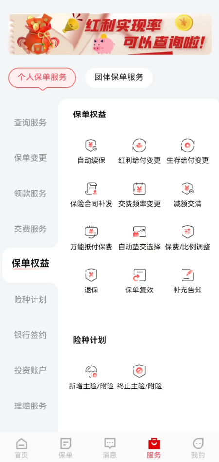 在頁面左側(cè)找到“保單權(quán)益”并點擊