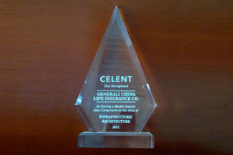 中意人壽保險(xiǎn)有限公司因領(lǐng)先的信息系統(tǒng)架構(gòu)和集成化系統(tǒng)平臺,被國際知名的研究與咨詢公司賽訊(Celent)授予“2011 年度亞洲保險(xiǎn)公司典范獎(jiǎng)”。