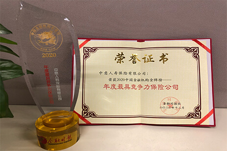公司榮獲2020中國金融機(jī)構(gòu)金牌榜“年度最具競爭力保險(xiǎn)公司”