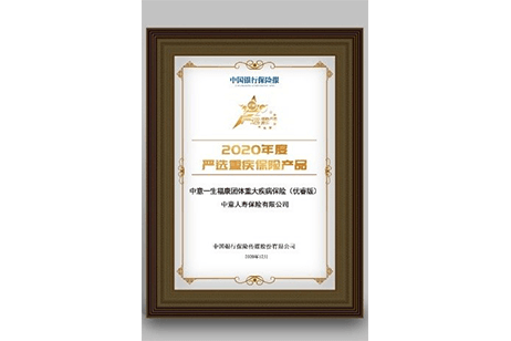 中意一生??祱F(tuán)體重大疾病保險(xiǎn)(優(yōu)睿版)獲得中國銀行保險(xiǎn)報(bào)“2020年度嚴(yán)選重疾保險(xiǎn)產(chǎn)品”