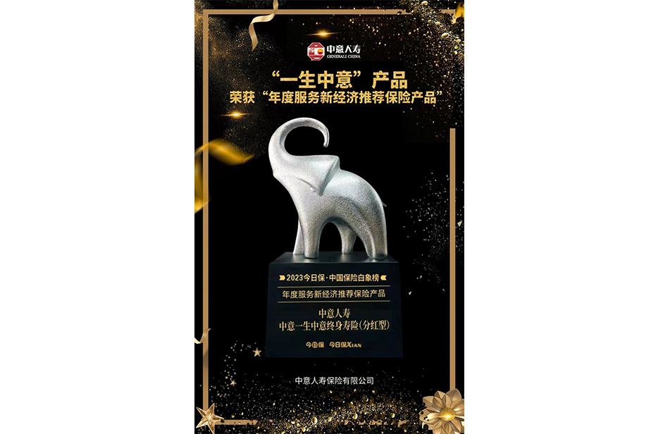 “中意一生中意終身壽險(xiǎn)(分紅型)”榮獲“2023今日?!ぶ袊kU(xiǎn)白象榜”“年度服務(wù)新經(jīng)濟(jì)推薦保險(xiǎn)產(chǎn)品”獎(jiǎng)