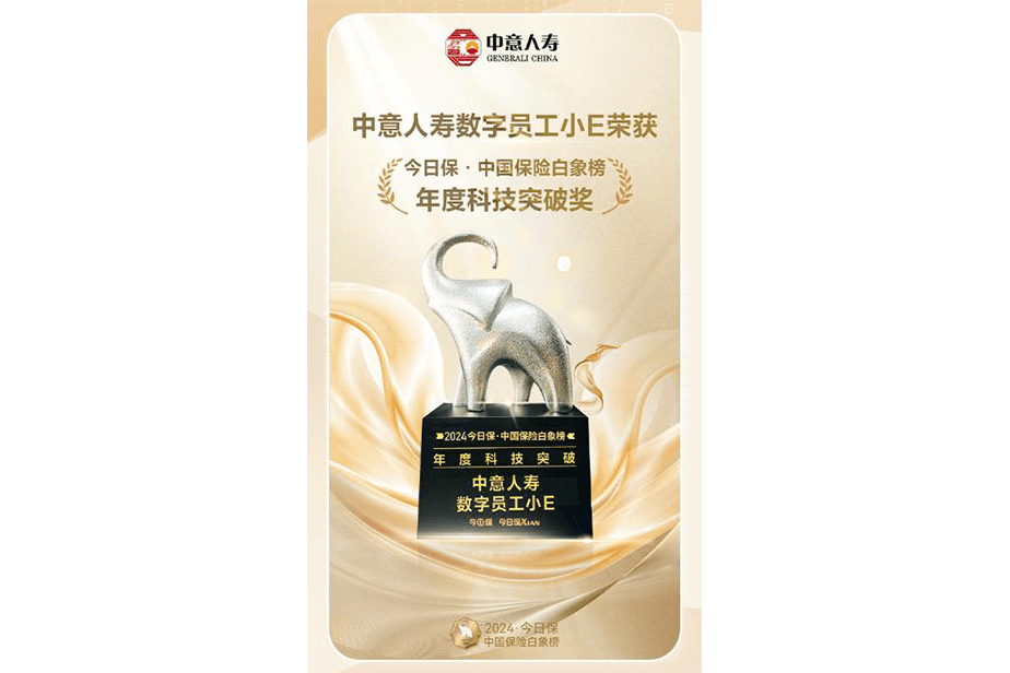 中意人壽數(shù)字員工小E榮獲今日?!ぶ袊kU(xiǎn)白象榜年度科技突破獎(jiǎng)
