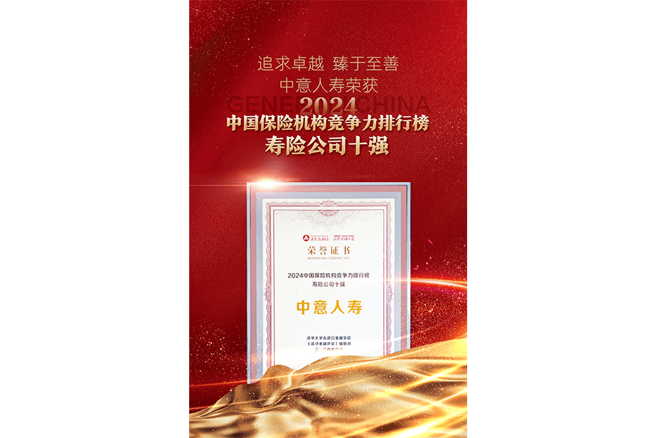 中意人壽榮獲2024中國保險(xiǎn)機(jī)構(gòu)競爭力排行榜壽險(xiǎn)公司十強(qiáng)