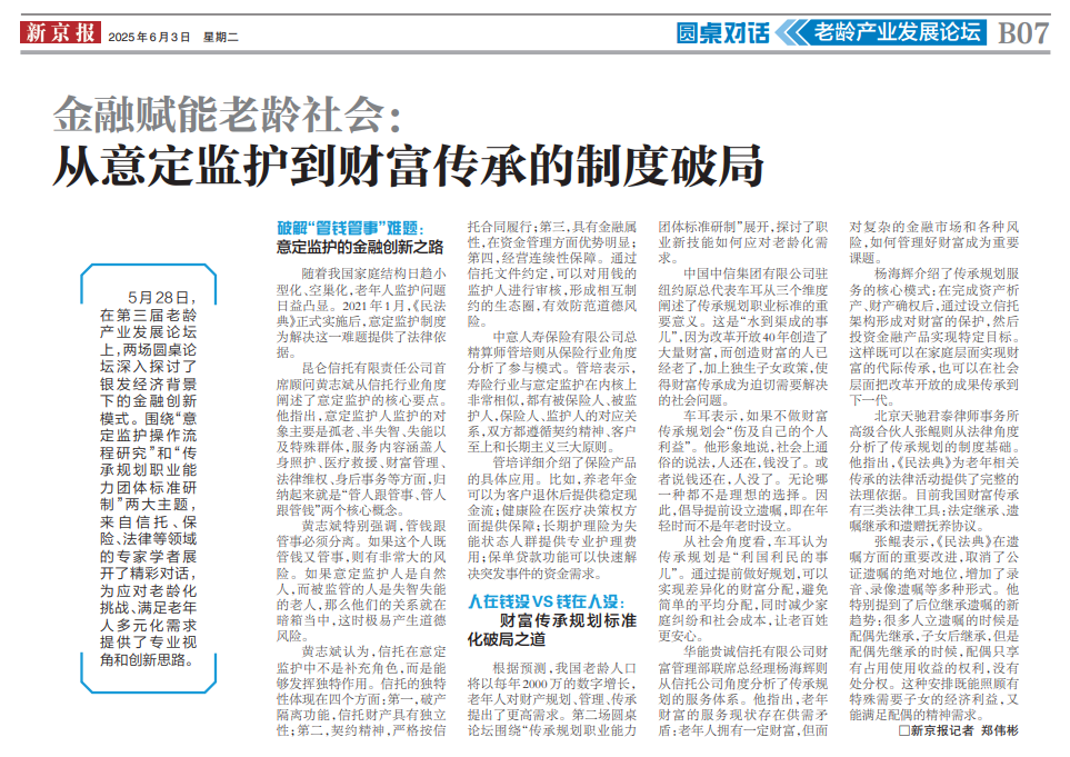 【新聞】新京報(bào)對(duì)談中意人壽總精算師:保險(xiǎn)業(yè)如何賦能意定監(jiān)護(hù)制度推廣