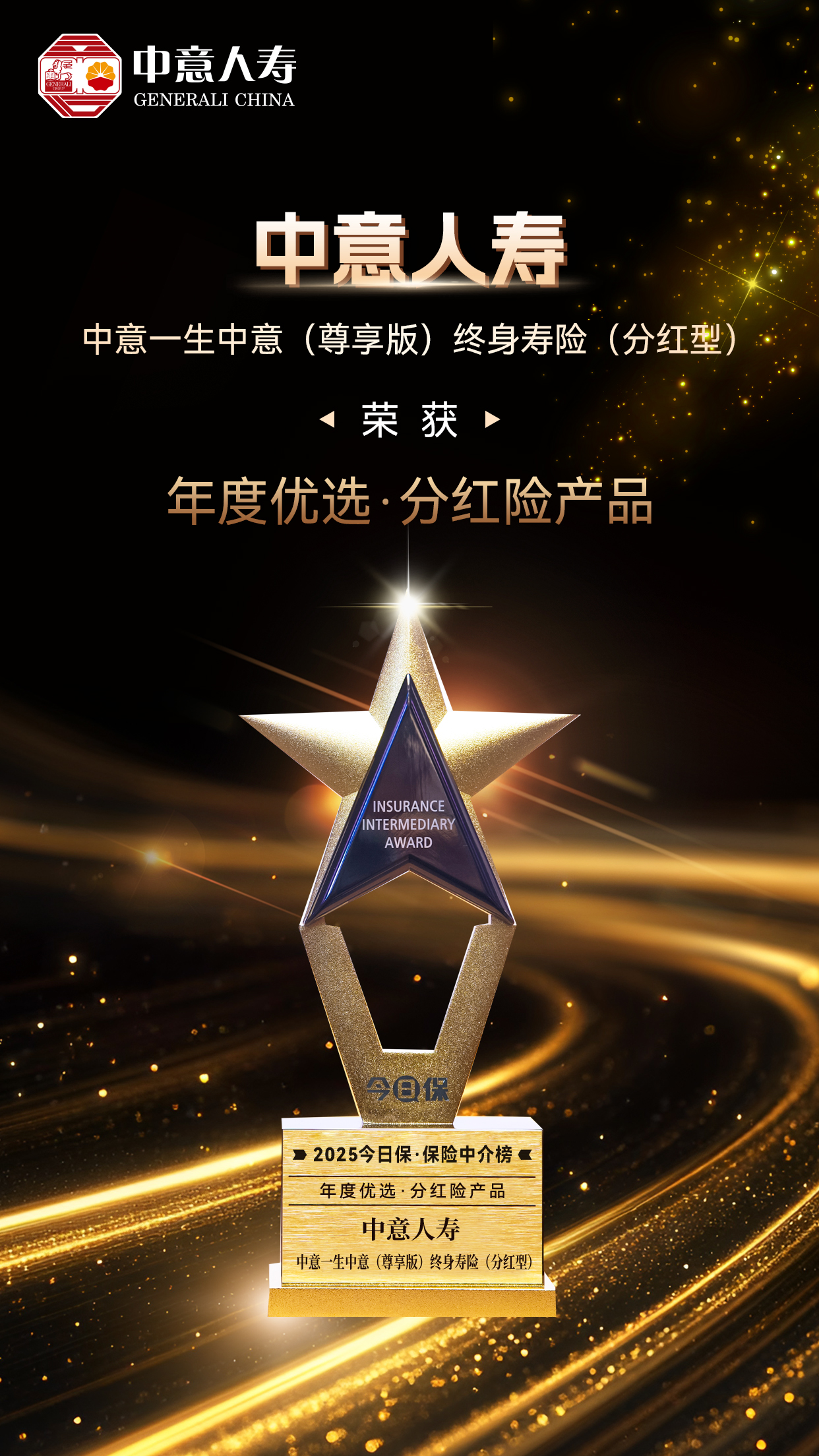 一路走來,“一生中意” 系列產品已先后斬獲2023年/2025年《中國銀行保險報》 “金口碑”年度保險產品、2024年智慧保·“中國保險鼎峰榜”財富管理卓越產品、2025年“今日保·中國保險白象榜” 年度分紅型壽險領航產品及本次2025年“今日保 • 保險中介榜”年度優(yōu)選 - 分紅險產品等8項榮譽,榮譽的獲得既是對“一生中意” 系列產品市場認可度的有力認證,更折射出公司“經營穩(wěn)健+風控嚴格+投資卓越+股東賦能”的多維實力。