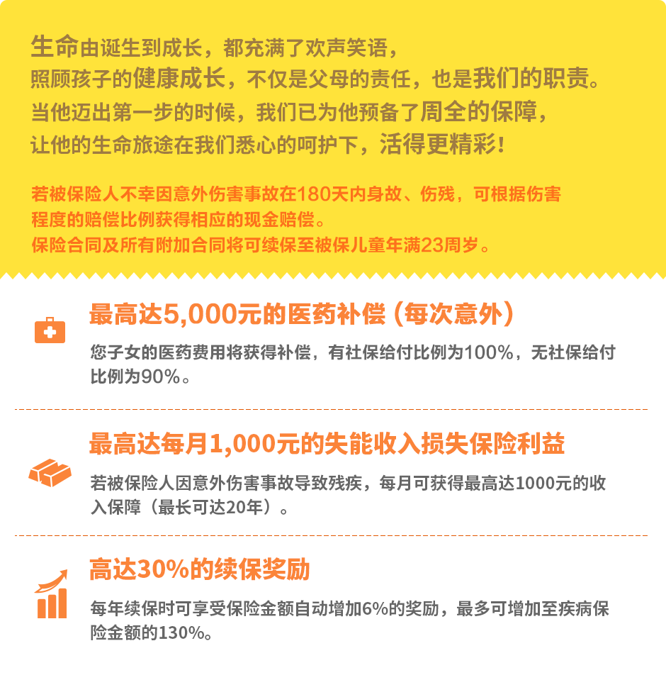 投保年齡:30天 — 17周歲(可續(xù)保至23周歲)